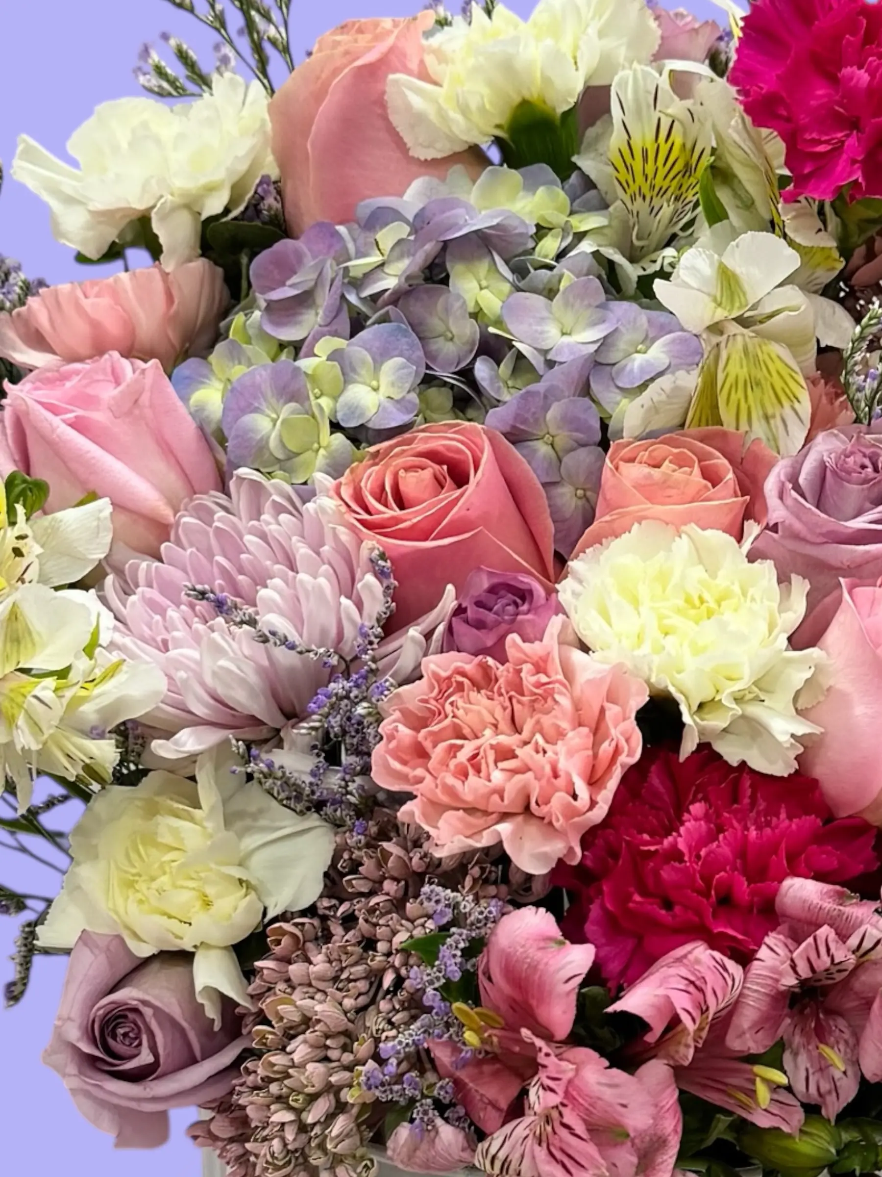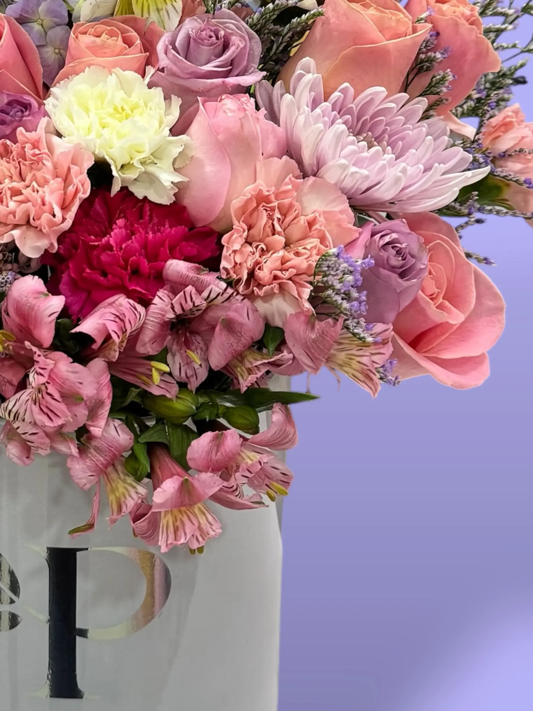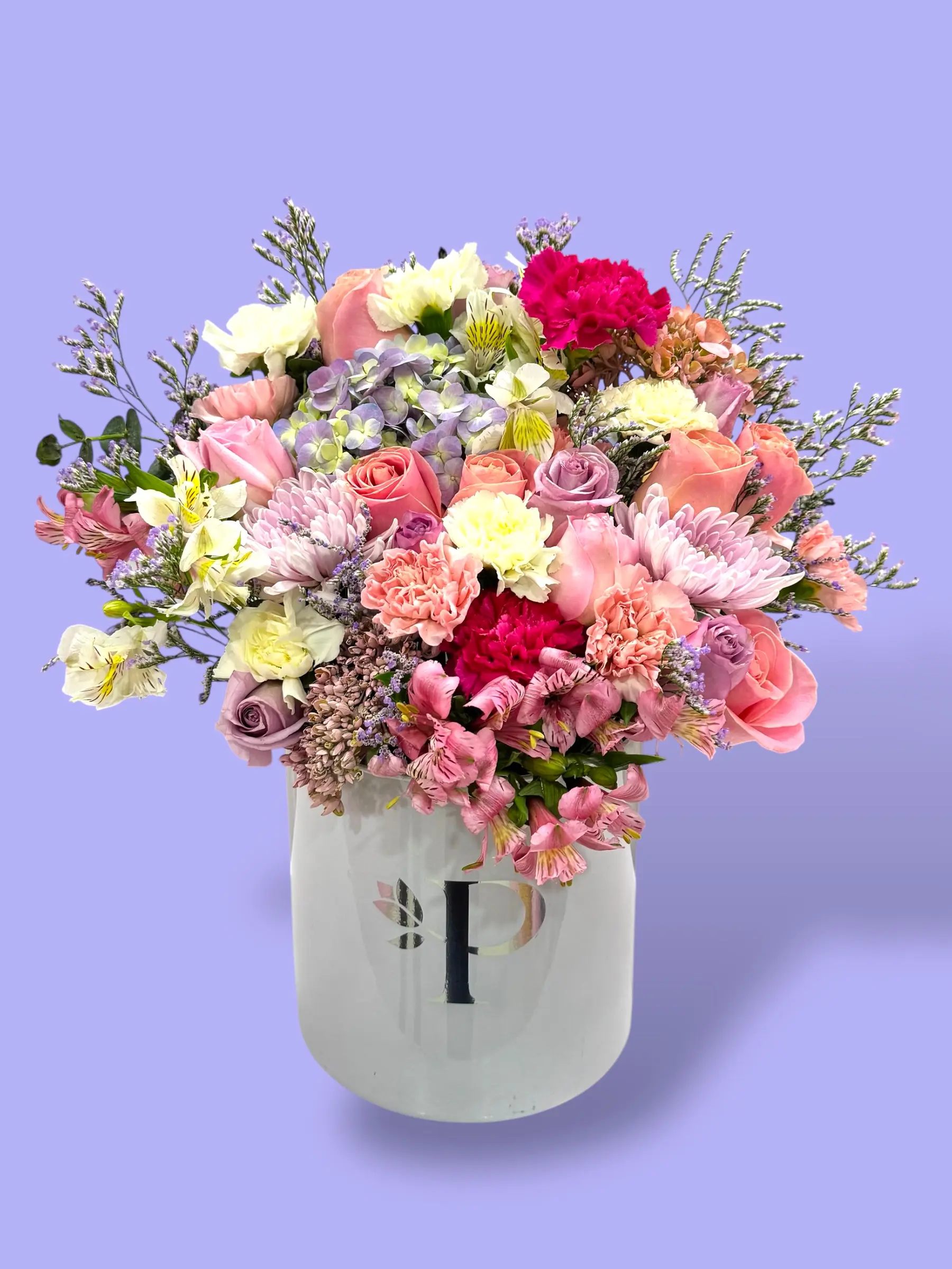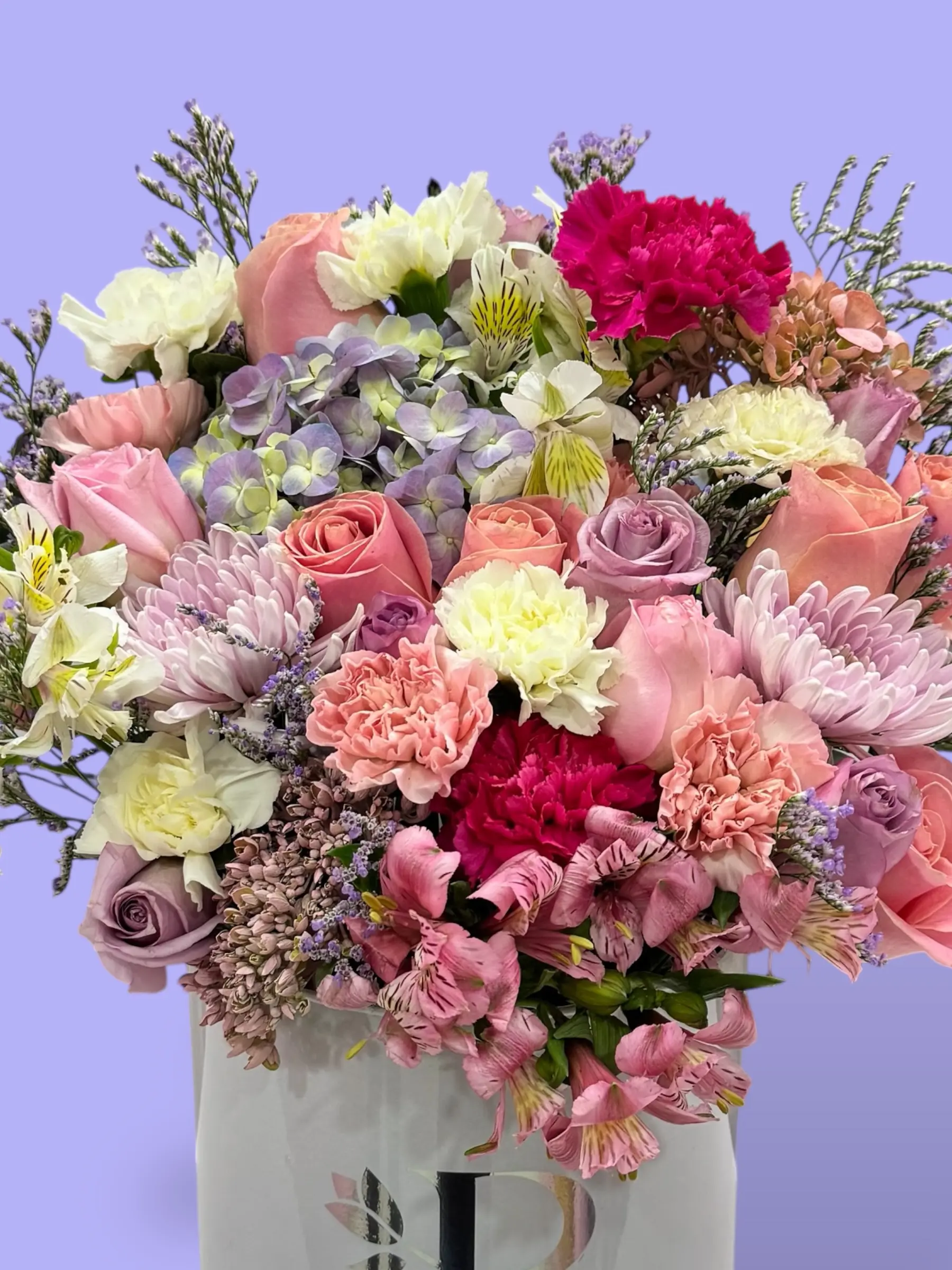 Elegancia es la definición perfecta del cilindro de mix flores, demuestra tu amor con este hermoso regalo.