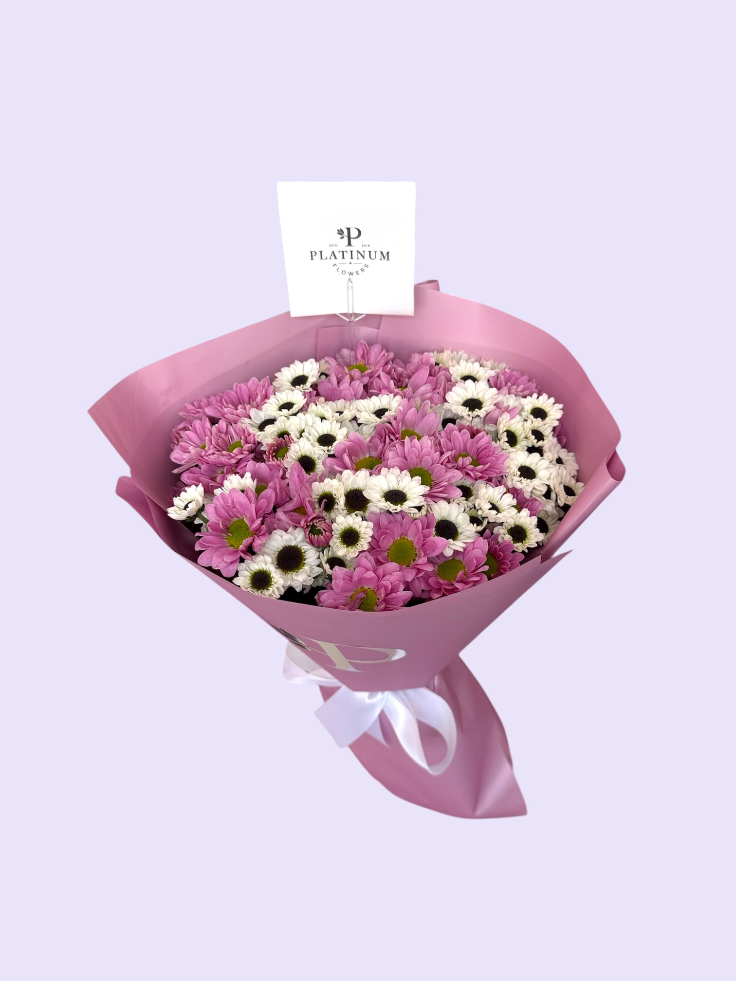 Su combinación de margaritas en tonos rosados y blancos crea un arreglo armonioso, ligero y con un estilo juvenil característico de Platinum Flowers.